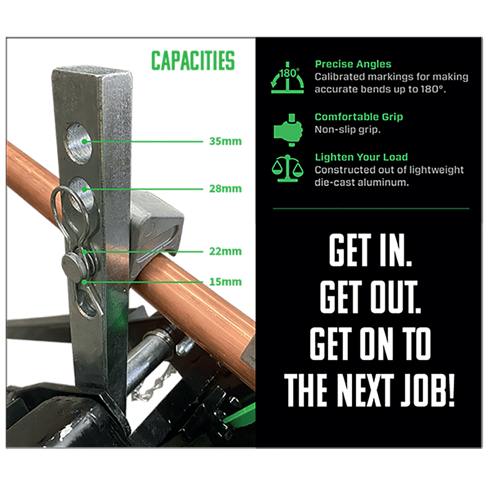 Capacities CM35 15, 22 & 28mm copper to BS2871. 15, 22, & 28mm mild steel to BS4182. 15, 22 & 28mm stainless steel to BS4127 7/8” & 1-1/8” copper